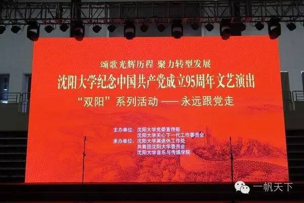 2016年7月1日15时30分,以“颂歌光辉历程,聚力转型发展”为主题的沈阳大学纪念中国共产党成立95周年文艺在沈阳大学体育馆隆重举行。校党委书记李继安、校长李峰与校领导班子出席了本次演出。